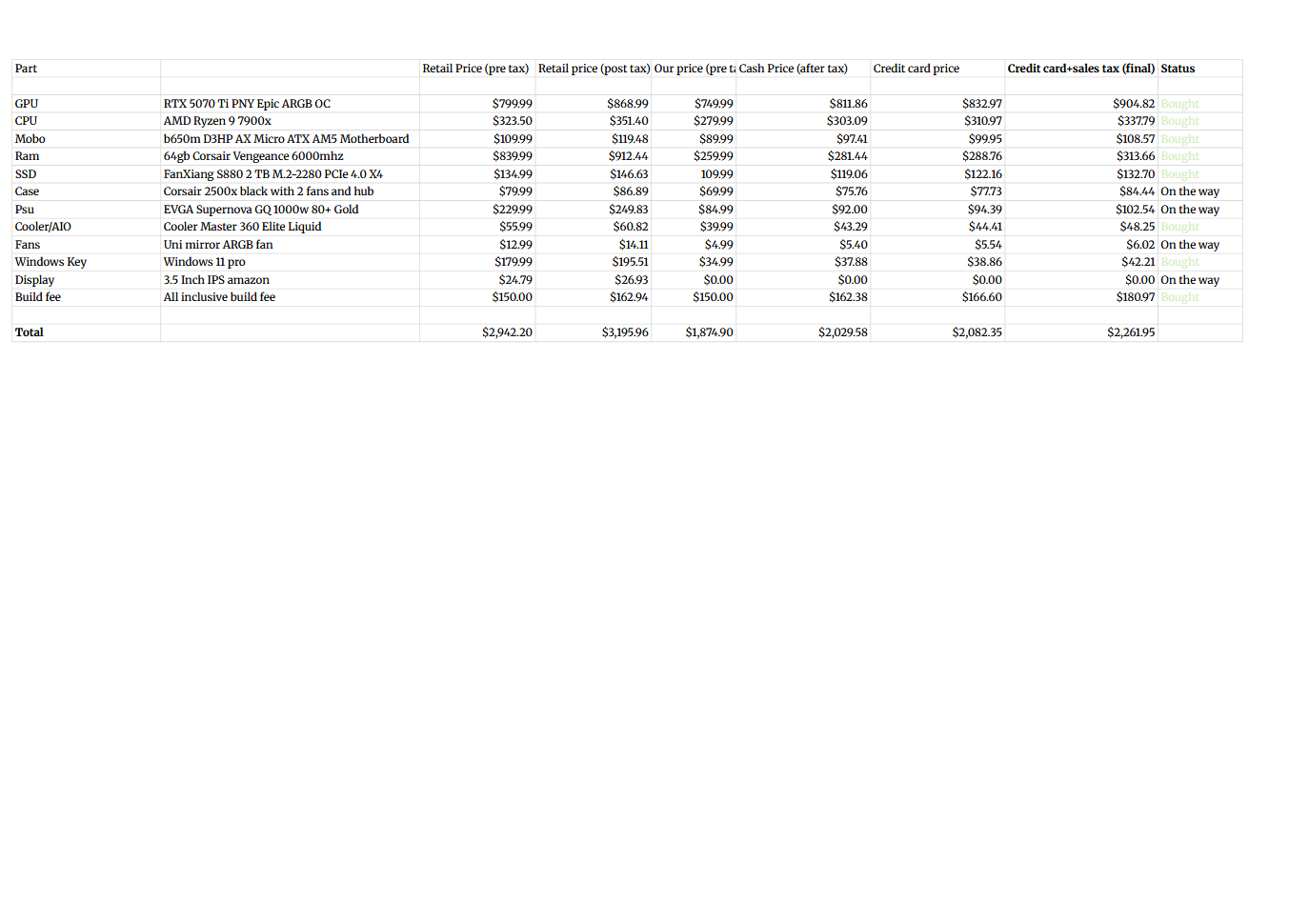Pcpartpicker list: https://pcpartpicker.com/user/Milkmadecheese/saved/W7dqBm